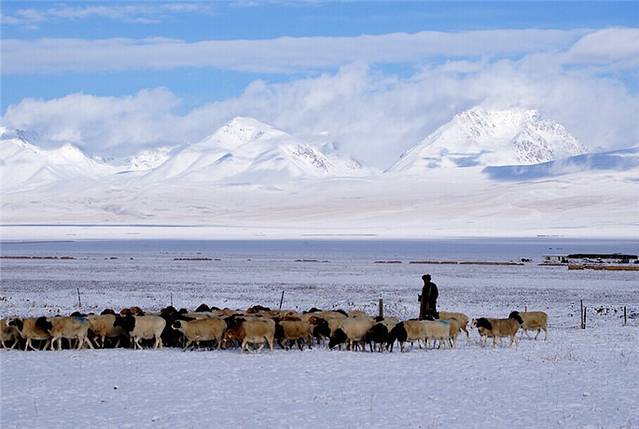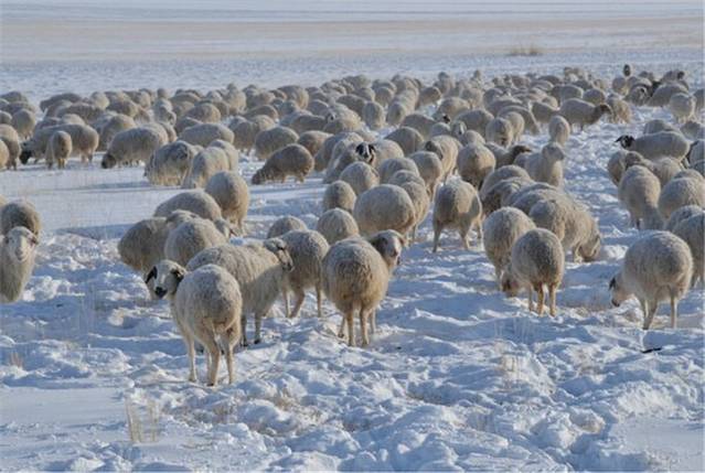 圆滚滚的小羊,在雪地里行走,看起来萌萌哒,一大群看起来好壮观,它们穿着皮毛一体,一点也不惧怕严寒啊,嘻嘻----