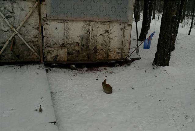 没有看到驯鹿却先看到了小兔子,一点也不怕人,特别可爱,驯鹿要再往里面走,先和小兔兔拍个照吧!