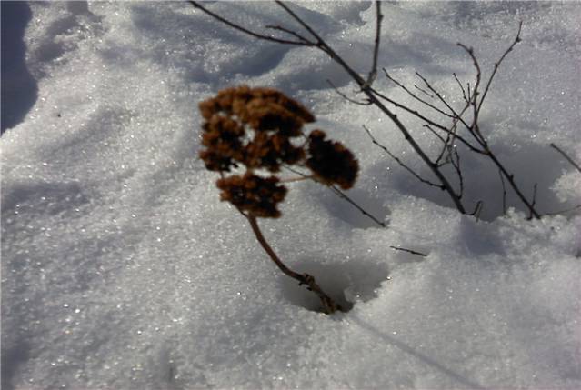 湿地上没有被雪覆盖上的,不知名的小草,干枯的,暗红色的像极了一朵迎着风的小花---