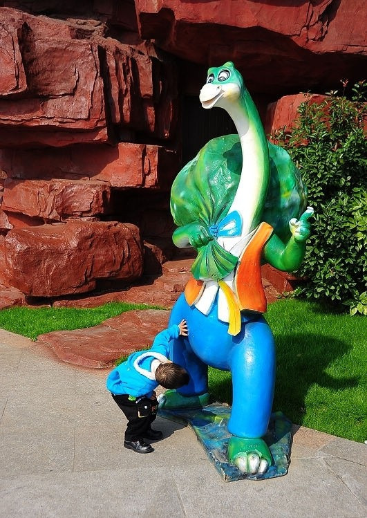 6、嘻哈恐龙城——热舞恐龙车。另外还有一个大型多元体音乐歌舞秀节目——美丽新世界,我们没有看到,应该很不错。我们今天去,景区的人不算多,里面能见到很多恐龙的雕塑,非常逼真。参与性的很多项目不用排很长的队就能玩到,如果在节假日,人非常多,排队要花很长时间