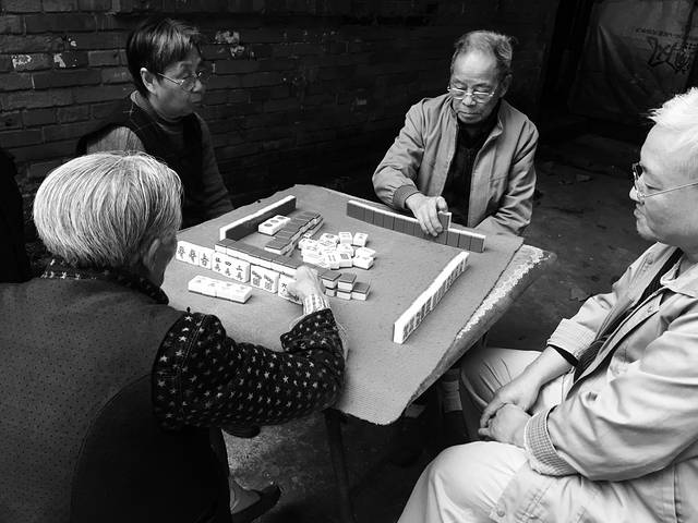 没有吃到面条,有点小郁闷的到处溜达,一转角就看到大树下几个爷爷奶奶在打麻将,四个人全戴着老花,真是乐死我了,这也是山城的特色了,以后我老了,也要戴着老花镜跟邻里街坊打麻将,想着那个画面,温暖的笑开了花儿~