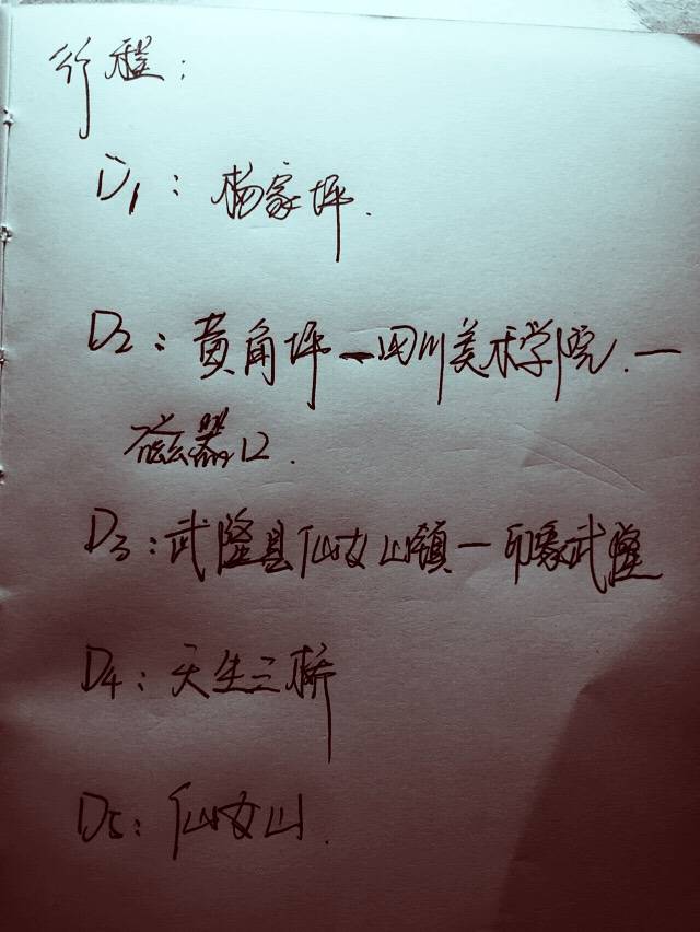 这是我手写的行程安排,跟传统的游记不一样,这篇游记没有明细的花费指南,全是由着性子,想去哪走到哪儿是哪儿,懒懒的小时光,属于自己的慢调子,我亲爱的重庆~