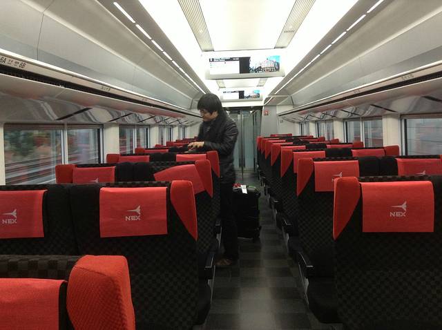 经历了飞机晚点之后乘坐了 成田特快、JR、地铁和公交车几种交通工具向事先预定好的旅馆进发