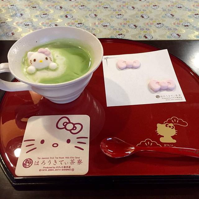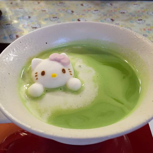 走不动的时候刚好看到hello kitty被门口的菜单吸引,抹茶拿铁也太可爱了吧!