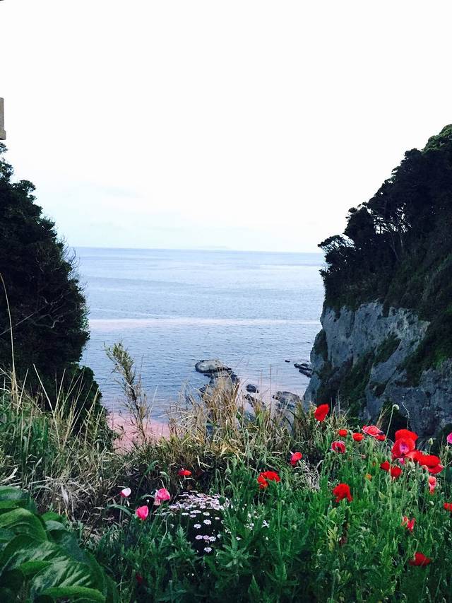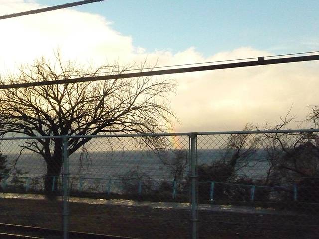 换上JR,看着窗外的太平洋,出现一道彩虹,对面好心的老奶奶看见我用相机拍照用日语说着什么,我也对她说着听不懂的“rainbow”