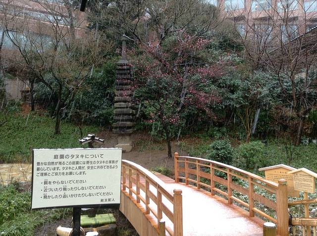 醒来东京竟然下起"瓢泼大雪",雪景映衬下的椿山庄,各种椿树,梅花,小房子
