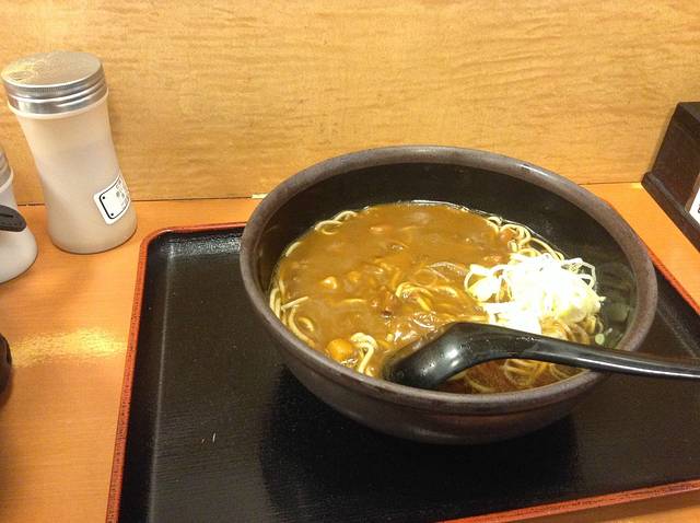 路遇一拉面飘香,饥肠辘辘排中村放弃的二人决定午饭就吃它了。拖鞋进店的拉面店还是第一次见,门口自动售货机购买ticket交给老板,全程聋哑状态。我要的是最爱的咖喱面~~~