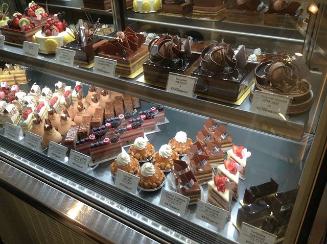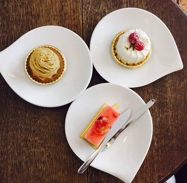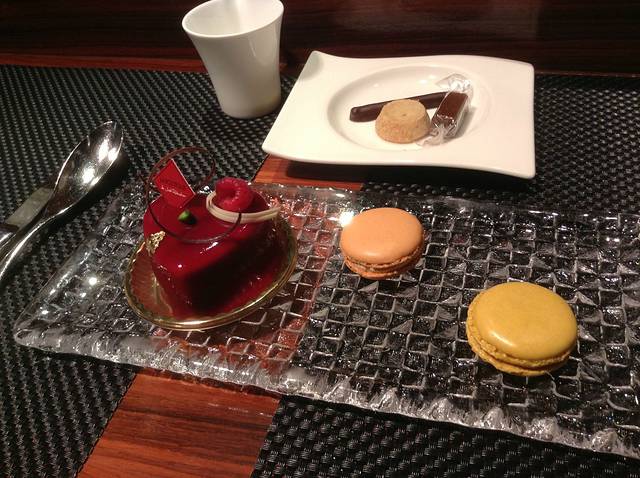 原计划到2121design sight参观,冒雨赶到发现近几天停业中,再次走不动到咖啡厅休息。搜索一下发现自己误打误撞到了大名鼎鼎的joel robuchon的la boutique。米其林二星,店里有人生日,几位帅哥服务生齐唱生日歌