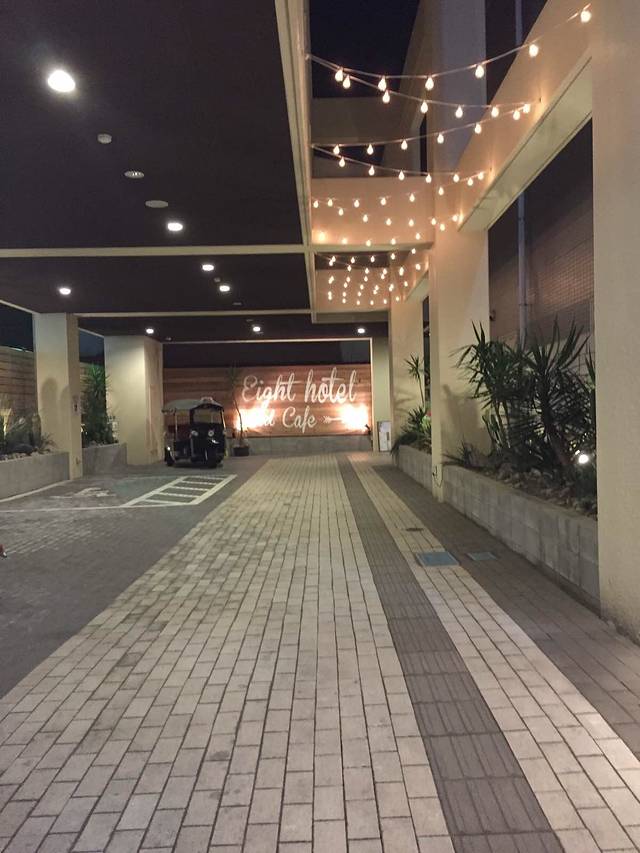 旅馆有三块地,用两个过街桥相连,院内自成一派