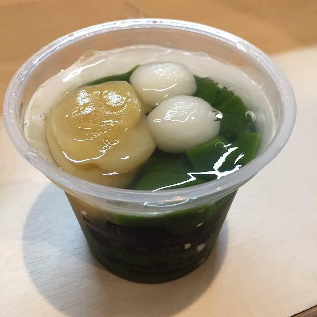 决定不等位,我们一致认为抹茶食品还是更适合做甜品,不适合当正餐,门口的外卖商店买了最接近餐厅人气款式的抹茶果冻外带品尝。