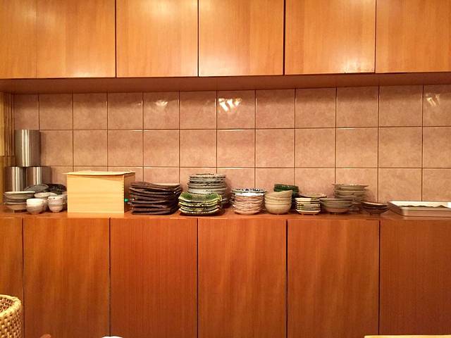 介绍食材的时候,服务员小哥很高兴地说,这里的菜品都是亭主设计的样式,我说很美,不仅菜美这间房间也很棒,小哥很高兴说也都是亭主的功劳,或许这里的服务人员,也是谷河的崇拜者吧。