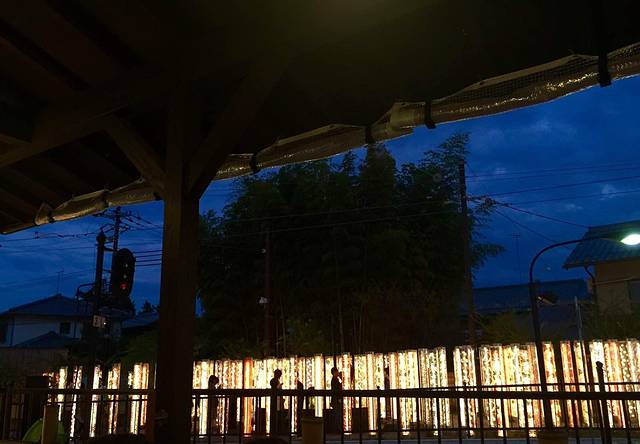 晚上的岚山站很美,甚至还有面对铁道的足汤,200日元买票进去,一天的劳顿都消除了。