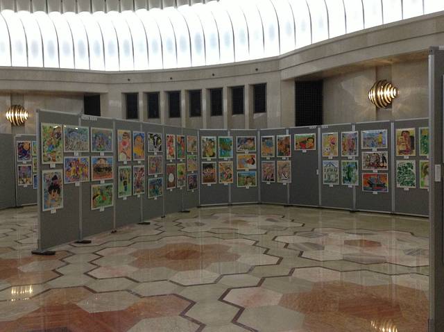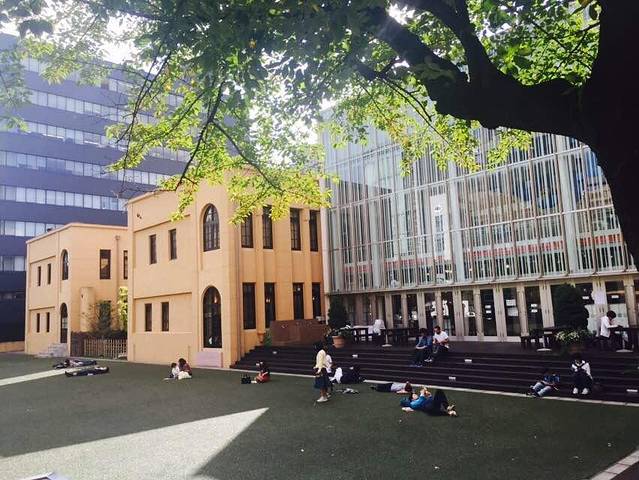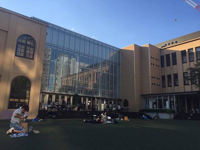京都漫画博物馆.其中战后收藏区按照年份展示了二战后的每一部漫画。户外草坪到处都是或坐或躺看漫画的人。