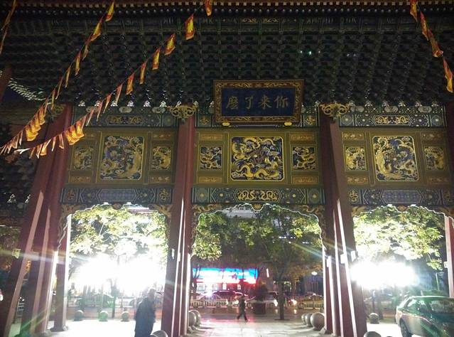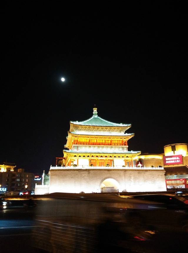 回到鼓楼附近,去了老米家羊肉泡馍。本来想去老孙家的,打车司机告我老米家比老孙家更好,就去了。点了最好的羊肉泡馍,没想到馍要自己掰碎,大概要玉米粒大小。累了一天馍太硬实在掰不动,有些大块的就让去煮了,结果有的馍里面没太熟,怪我喽~然后去回民街逛了逛,看到了有人推着大炮赛的望远镜看月亮,这几天正好月亮渐圆,就花了20看,大爷很好,告我可以连看三天,可惜我来不了了。回去路上路过了都城隍庙,听说是颜真卿写的字,反面是你来了吗四个字,顿时觉得这么大牌匾萌萌哒。后来知道'你来了吗'是道家里的一句话。