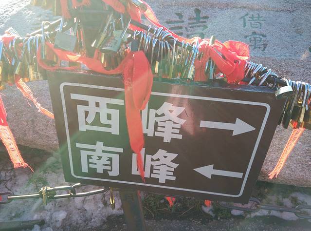 早上从西安北站程高铁到了华山,做免费绿色大巴到了游客中心,游客中心乘车到了玉泉院,开始自古华山一条路。大概九点半从玉泉院开始,我的体能不错,没太休息,但速度一般,前几日华山上下雪了,我去爬时,天气转暖,雪基本清理干净了,但在山脚下听到了像打雷一样轰隆隆的声音,看到有的山峰上有小型雪崩,雪在往下掉,惊讶地都呆住了,忘拍照了。本来一起进山爬的人很多,但我走的快,基本就超过他们了,下午1点到达北峰,2点到了东峰,路上的人告诉我想爬完几座山峰不可能,很着急吃东西几乎是边走边吃的。这时候就会发现真空包装的肉,是最简单的能量摄入。路上有一块大石头,需要爬过去,我爬到一半,发现石头上一层冰,穿着雪地靴还开始下滑,本来是手脚一起爬的,开始下滑后就膝盖跪地增加摩擦力,上不去也下不来,前后还没人,我跪那等了一会儿,来了几个游客拉了我一把才过去的。当时想要死了要死了,死也应该昨天死在黄河,不能死在华山。3点半到了鹞子翻身,华山第二险,花钱下去了,不过走了一半就回来了,一是太饿了怕上不去了,一是工作人员告我索道5点关闭,必须抓紧时间。到了西峰索道4:15,又往西峰上爬了一段路,没到山顶,在我能到达的最远的地方挂了把锁,如果有下次,从这里再来一次!我本来有严重的恐高症的,感觉已经治愈了。华山真的是一个没有风景的山,和我爬过的其它山来说,景色差远了,只是一个险字。也许是我已经黄山归来不看五岳了。
