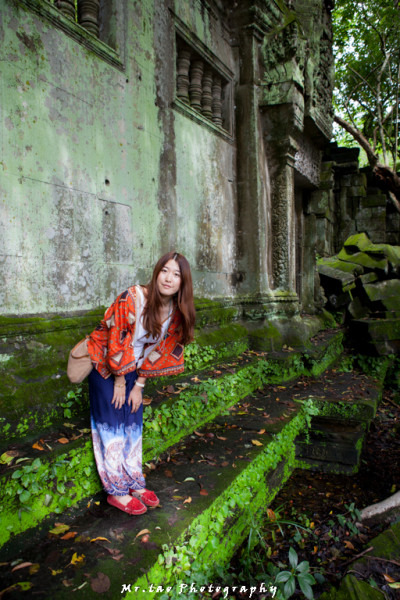吴哥整体色调比较重,如果拍人的话,建议穿一些比较鲜亮,对比大的衣服。