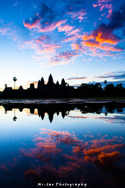 如此的景象,在我浏览过大量的吴哥日出后,发现真的很少出现这样的景色。。。司机也告诉我们真的是非常非常的幸运,能看到这样的火烧云。