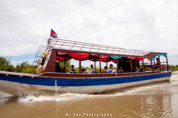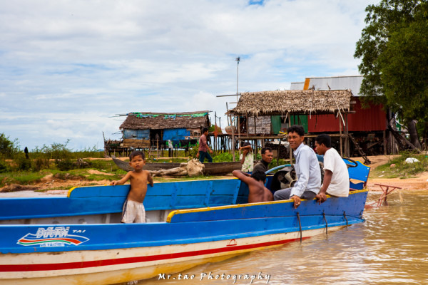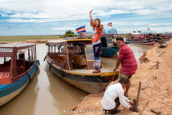 车抵达了洞里萨湖畔,花了20美金购买了船票后我们被带到了一艘不大不小的船上,因为人少的关系吧,我们没有等人拼船,所以这艘船只属于我们4人。。