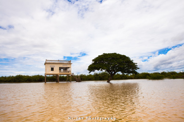 我们的船开行在洞里萨湖上,我耳边除了马达的轰鸣声外,只有风声与水声的交响,水上人家一栋栋的破烂的竹房在我身边一一划过:学校,餐厅,住家,医院,杂货店。。。。。。