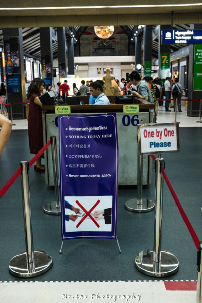 来之前就看到各种攻略说柬埔寨过关收小费的事儿,真到了该过关的时候发现,还真是明目张胆,告示就摆在前面 这些工作人员就是置之不理,依然会索要小费,我们4个人是分4个通道分开过关的,每个关卡的工作人员都会要小费,据说都是中国人民给惯的,他们看完护照知道是中国人就开始嘀咕小费,在这里真的呼吁大家,一定不能惯着,就不给!!!! 来之前把该弄的都弄好,只要前期手续准备没有问题,他们是不会和你耗下去的,或者就假装听不懂,或者让后面的同伴一直催,总之不要有胆怯的心里,收小费这事儿本身就不合理也不合法,心虚的是他们,最后都会放过去的!(我是冒着绳命危险拍了这张照片啊,海关是不允许拍照的。。)