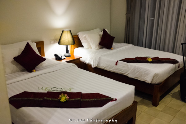 关于酒店我们争论了很久到底要不要住“妈妈之家(MotherHome Guesthouse)”,但是考虑到几点因素最终我们放弃了:1、妈妈之家去老市场步行大概10分钟,2、说实话感觉妈妈之家设施有点太旧了,3、逆反心理,不想中国人扎堆儿心理。。。再三纠结下,我们选择了Apsara Centrepole Hotel。不得不推荐一下这家酒店,比邻pubstreet,但是闹钟取静,白天还有保安站岗;酒店应该近两年建的,设施非常新,而且还有一个小泳池,到达的那天服务员还贴心的将客人的名字用叶子摆好在床上;价格也十分给力,233元每晚/间 (订酒店的网站很多 建议去 AGODA 上看看)