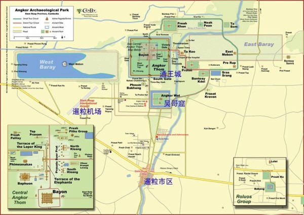 Day-1:大圈带半小圈(整个吴哥的景点有很多,但是很多其实都不大,有些不经相同,所以我们在精力最充沛的第一天尽量多去一些景点,留下比较重要的给第二天和第三天) 参观大圈比粒寺(Pre Rup)-东梅奔寺(East Mebon)-塔逊寺(Ta Som)-龙蟠水池(Neak Pean)-圣剑寺(Prah Khan)—巴方寺(Baphuon),空中宫殿(Phimeanakas)—癞王台Terrace of the Lepper King—斗象台(Terrace of the Elephants)—周萨神庙(Chau Say Thevoda),托玛侬庙(Tamanon),茶胶寺(Takev)塔布龙寺(Ta Prohm),班蝶克雷庙(Banteay Kdei),皇家浴池(Sras Srong)(Kravan) 豆簆寺
