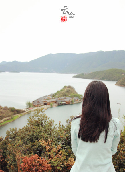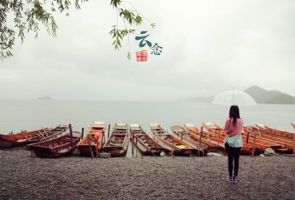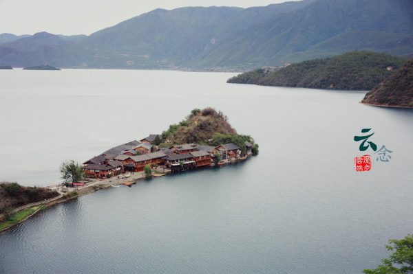 下午3点到达泸沽湖,青山黛瓦笼罩在一片烟雨之中,没有预见的碧蓝天空。