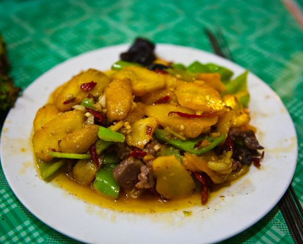 这第一天算是结束了,回到宾馆,老板和老板娘都在准备饭菜,我们没有提前订所以很遗憾没尝到他们的手艺!只能出门找食儿了!