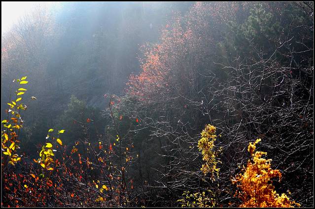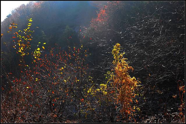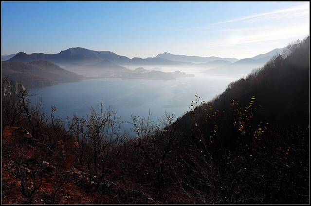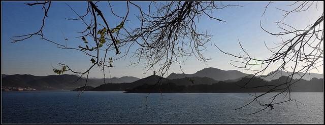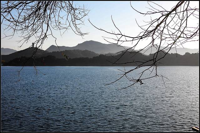 这几天去金海湖小住了几天,天天沿着大坝来回溜达,顺着小路爬到湖南边的小山上。初冬的山树,大部分已落叶,但满树的柿子还没摘,留有几分残秋。
