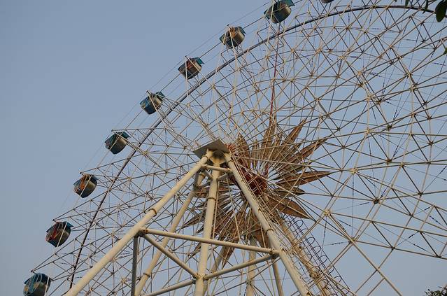是一个机动游戏场所。一般都是10元一次,里面有旋转木马、鬼屋、小火车,我们玩的摩天轮是20元的。