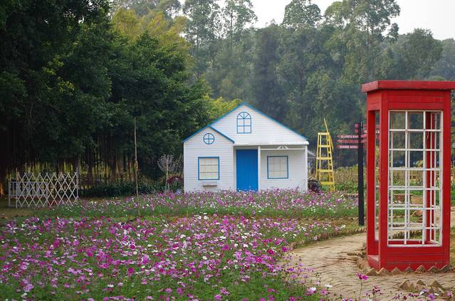 很多花草树木,有湖,还有小木屋、秋千那些,很多人在这里拍婚纱照。免费入场。