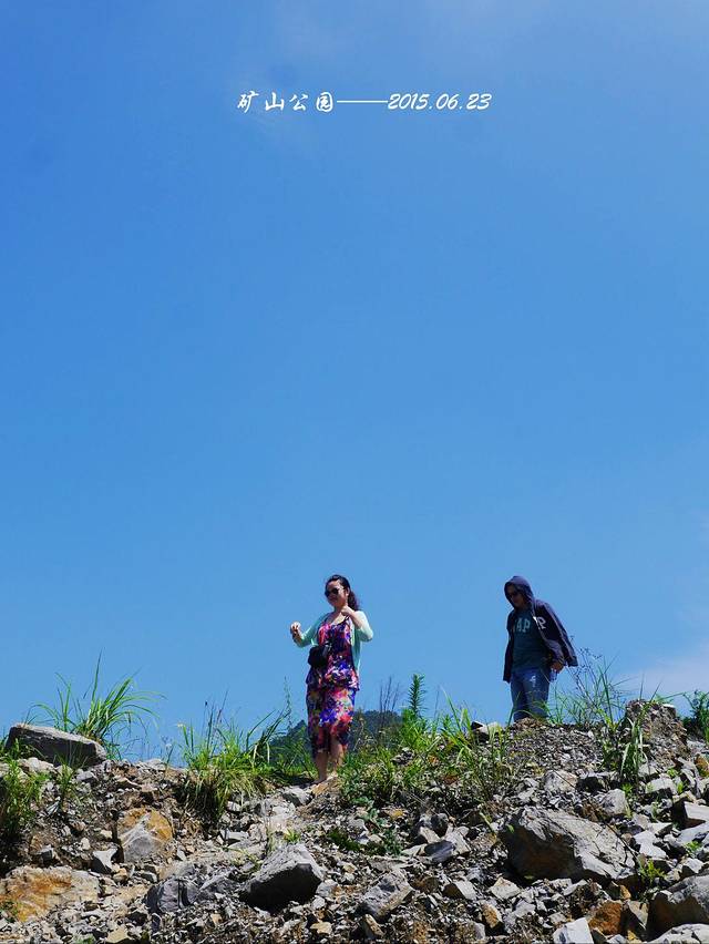 这根本就没有路~全是碎矿石~两大护法保驾高跟鞋的大妈下山~