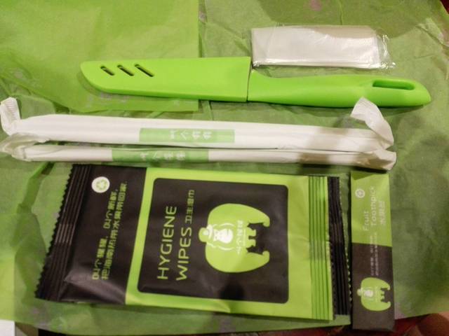 配送的湿巾水果刀等