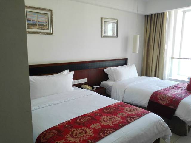 这家酒店地点就在解放路上,著名的第一市场就在对面,楼下就是公交车站,交通方便,地理位置极佳。在宝盛广场五楼是大堂,六到七层是客房。房间刚打开的时候有一股很大的味道,好在窗户够大,打开通风后我们去第一市场觅食,等回来时基本没有什么了。酒店按四星级收调节金,一人9元。晚上就到楼下坐公交车去旺豪超市,买了一堆的伴手礼,想想后面四天要带这么重的东西也是醉了。最后我们二人只能想到用快递搞回家,才能不影响后面的行程。快递是打的114转的圆通,宝盛海景的服务也很好,我们是把东西留在前台让快递小哥来取,自己第二天出门去玩,前台的美女很给力也很尽责,拿走快递前还打电话给我确认,真心赞。