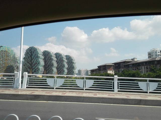 那几棵树是建筑,有特色,司机说有人说难看,当然也是像我这样觉得有个性的啦!