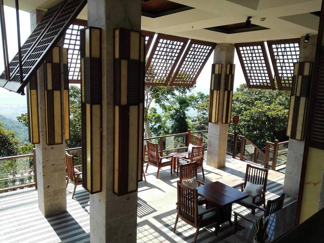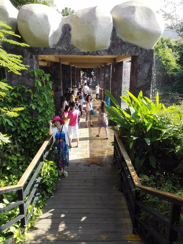 大概花了半个多小时,时间有点记不清了,就到了。不过司机说这个是停车点,我们要走过马路后向前走个五十米左右走到森林公园那边的游客服务中心后再联系酒店,就会有电瓶车来接我们入住啦。距离是没有错,可是都是上坡耶,因为这里已经马上要到热带森林公园了,都是上山的路,走得有点累。我们提前打了电话给前台,要求派车,可是前台却回复只有到了游客服务中心再打电话给她们。这个很不人性化,因为车子下来要大概十五分钟,而我们走过去大概是十分钟。我们想的是到了就能上车呢。不过话说回来,住在山上,交通真得是最大的问题,后面退房时我还遇到了问题。