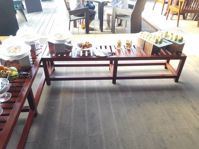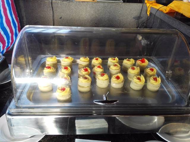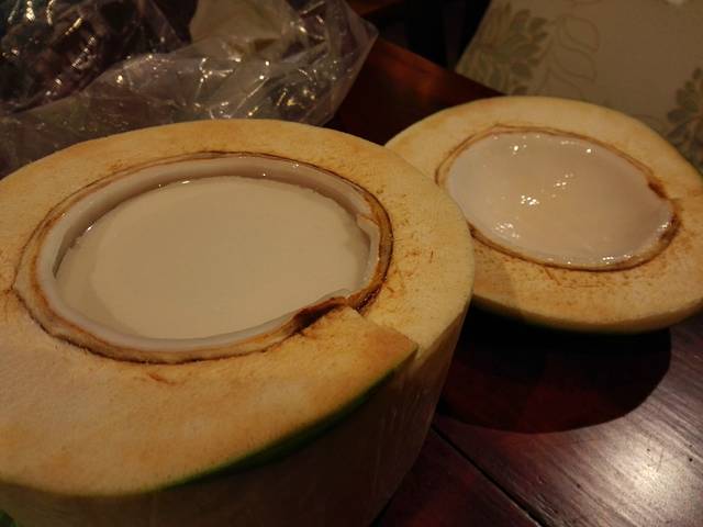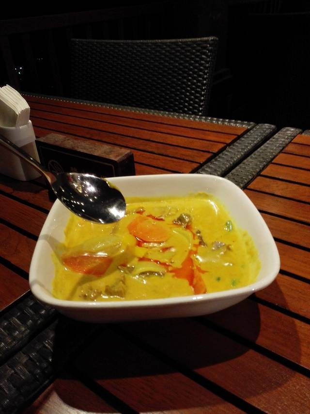 泰餐厅提供地道泰国美食,而且坐在外面可以俯瞰美景!餐厅里面还有菲律宾歌手驻唱,美食美景加音乐,难怪被评为2014必吃餐馆!我们点了咖喱牛腩和泰式菠萝炒饭,分量足,两个人吃得饱饱的!当然价格也是足足的,加上服务费215一共。吃得太饱,走路回房间后又看到了看起来就好好吃的椰冻、菠萝蜜…反正椰冻我是吃掉了,菠萝蜜好友吃了大半,总之那天晚上我们都吃撑着了!