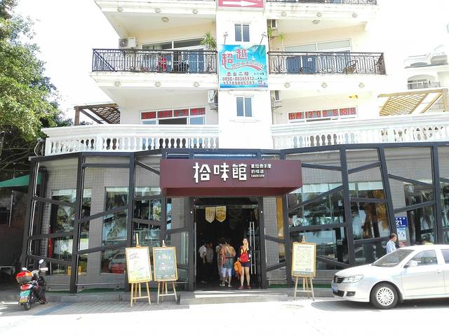 中午原来就打算好了,要在拾味馆吃,多少吃点海南菜,而且大众上面评价不错。于是逛够了的我们,又坐上了万能的8路车,坐到水利大厦下车对面就是了。拾味馆三亚湾店地址在昌达海景花园B座1层,正对面大马路,门头非常好找。这家的装饰挺有特色的,我们十一点刚过就来,他们刚刚开始营业,让我们有点始料未及,不过这样也好,不用等位子。后来就发现来的人越来越多,等我们离开的时候已经开始排号了。生意果然很火。二个人就点了大家推荐的拾味骨汤(小份)加娃娃菜;拾味鱼排(非罗鱼)黑椒牛仔骨和清补凉。用大众点评付帐人均80,味道中规中矩,大骨汤味道很浓,鱼排配上甜酸的酱料挺好吃的,牛仔骨味道不错可以评80分,清补凉就是椰奶里加了各种水果西米的甜点,这个倒是觉得一般般了。我还拍了菜单大家可以参考一下。