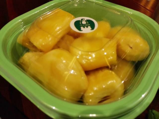 三亚的水果很出名,要买水果要去批发市场,好像是鸿港市场,滴滴司机在送我们去海裳湾的时间有指给我们看,不过我们一直没有时间去。最后,还是用了互联网的微信公众号,选择了一次送货上门。大家可以关注一下叫个猩猩这个公众号,然后加他的客服,我也是在网上找到的,可以直接用微信下单,公众号里还有一些三亚的吃喝玩乐介绍,有时还有特价房转让呢。进入微店可以选择,大家可以看个图。我们订的是菠罗蜜,椰子冻,还有一个释加没有拍。亚龙湾89送货到家,于是就送到了鸟巢,还贴心的配备了手套,水果刀,湿纸巾,真心不错,值得推荐。