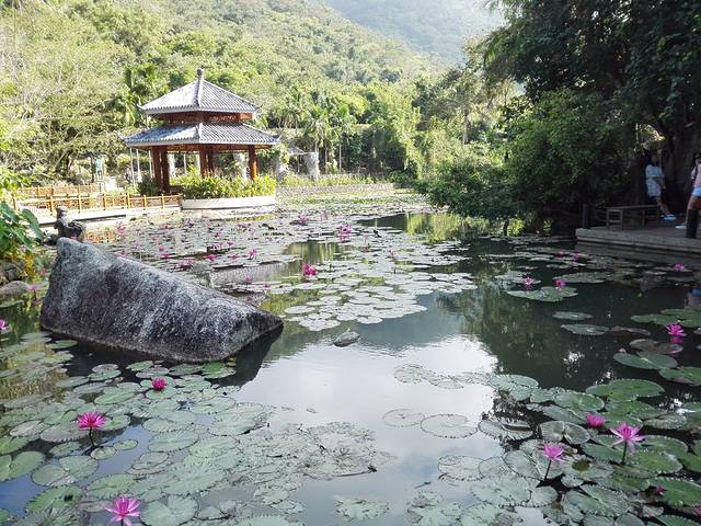 人间天堂鸟巢度假村和森林公园是紧密何为一体的。酒店的客人凭门卡可以上山下山随便玩,一般来说几个主要景点安路线从山底到山顶有兰花谷,过江龙索道,非诚勿扰2的试婚房,峭壁天池,天作之合婚礼礼堂和沧海楼。我先去的过江龙索道,然后坐车到老鹰房那边的峭壁天池,游了泳后去了试婚房,参观了婚礼礼堂然后坐车到山顶登沧海楼俯瞰亚龙湾。第二天早上早餐后坐车去了兰花谷。