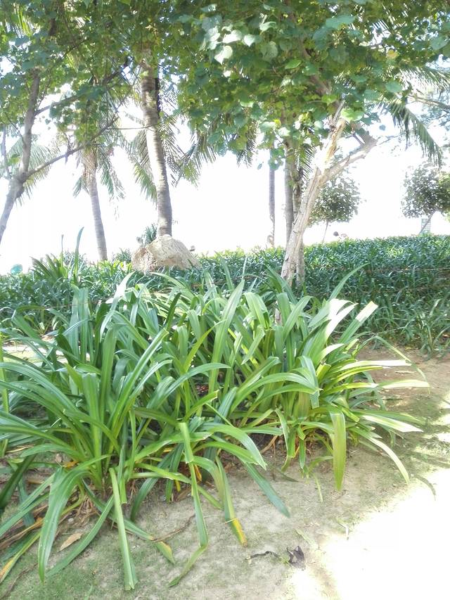 第二天睡到7点多起床,把昨天在第一市场买的牛奶和蛋糕拿了出来,当早餐吃掉了。估计是昨天海鲜吃太多,早上并不是十分饿。本来还打算去KFC喝粥的,二个人都觉得没有必要,于是我们8点半就到楼下公交站坐车去椰梦长廊去了。宝盛交通非常方便,楼下就是公交站一方百货站。来往的公交车很多,去椰梦坐8路车就行了。同时如果要去鹿回头呀什么的,也都有车直达。如果对公交不熟悉的,可以在高德或百度地图上搜索。一般不会错。在一方百货站上车,我们在绿海田园站就下车了。原来我以为椰梦长廊是一个地点,后来与当地人交谈后才知道,原来这一路上二公里都被称为椰梦长廊呢。这边是三亚市民公共的休闲区域,一路上可以看到很多拖家带口的家庭。遇上的热心人介绍说,我们来的时候算迟了。早上六七点的时候还有一大拔人是晨泳晨练的人员呢。感觉起来和类比福州的江滨公园,与厦门的环岛路也很像,风景不错,绿意盎然。海水看起来不是那么清,不过还是有挺多人下水的。一路走来时不时还能看到还在跳广场舞的大妈们,还有叫卖珍珠的小贩,价格不贵,讲讲价更要好。