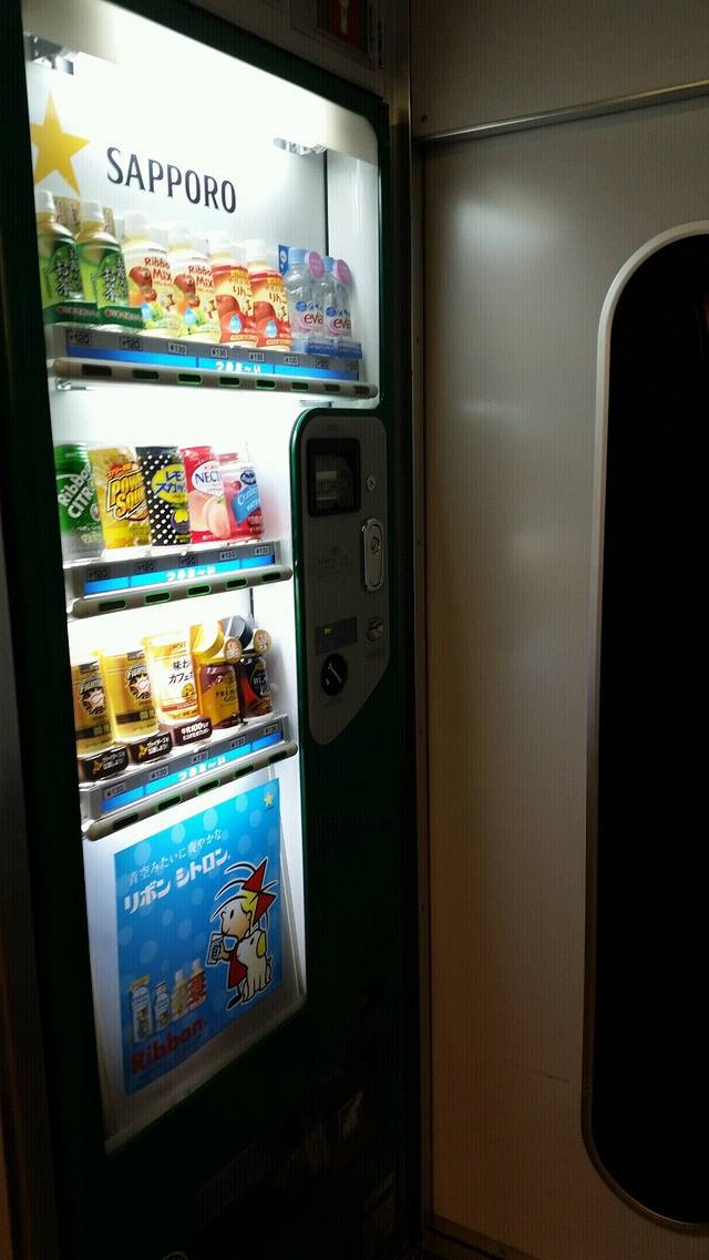 札幌到旭川的列车有饮料自动售卖机。车上各种设备靠着感应和触摸体现出高度智能化。