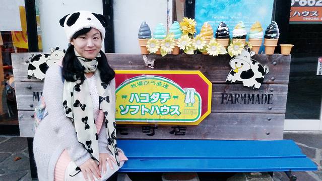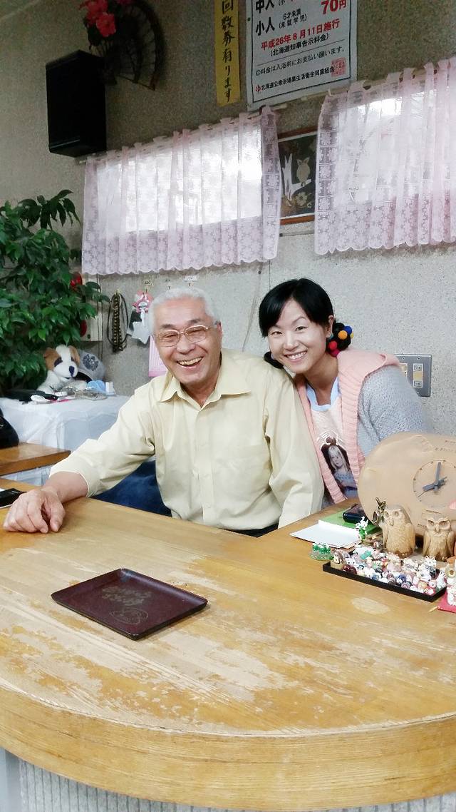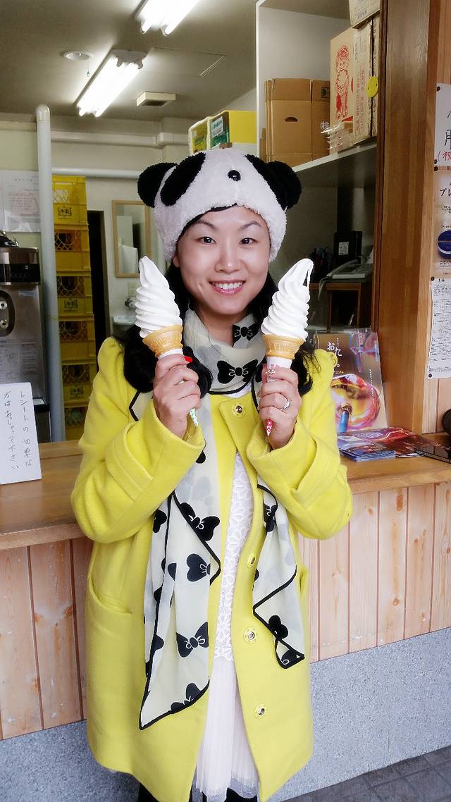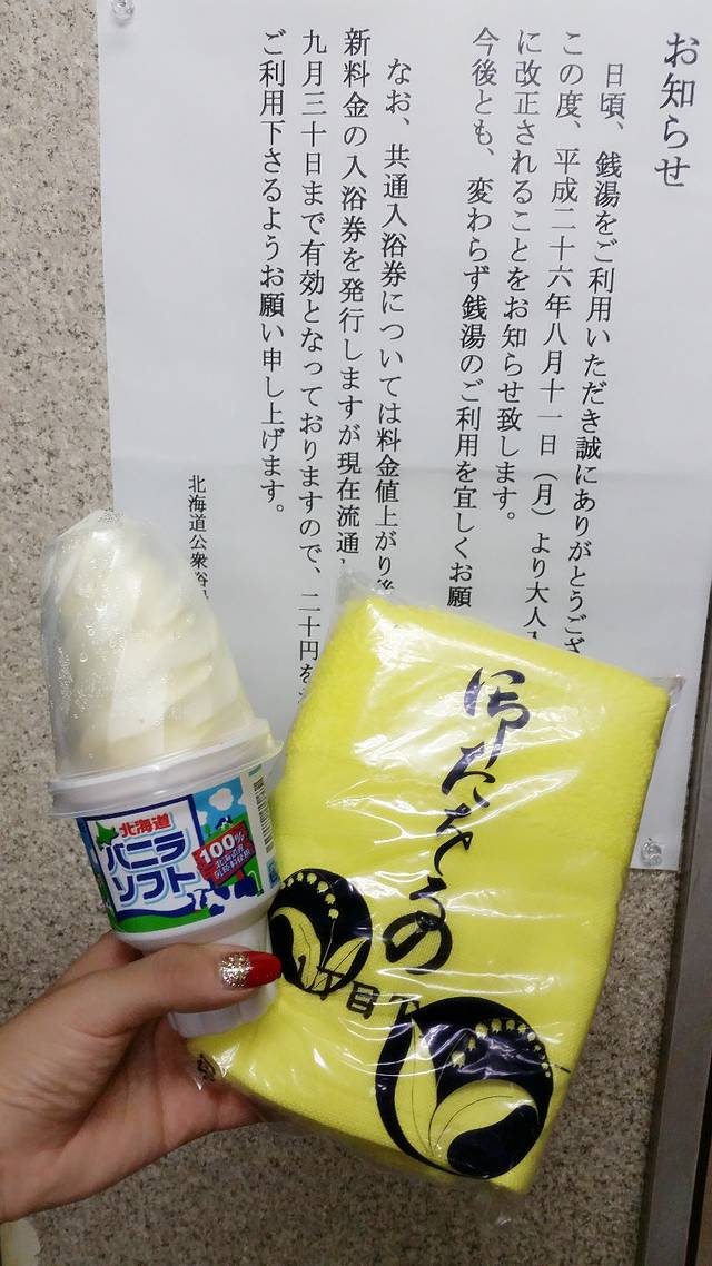 泡汤后吃个北海道的冰淇淋,再加上老爷爷送的毛巾,很满足。