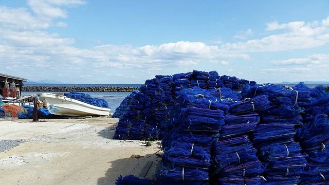 渔网的蓝色与天空海洋多么一致。