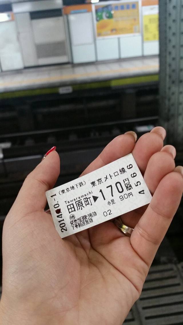 东京最后一次地铁。由于东急两日券失效,用零钱买两个站的单程票。