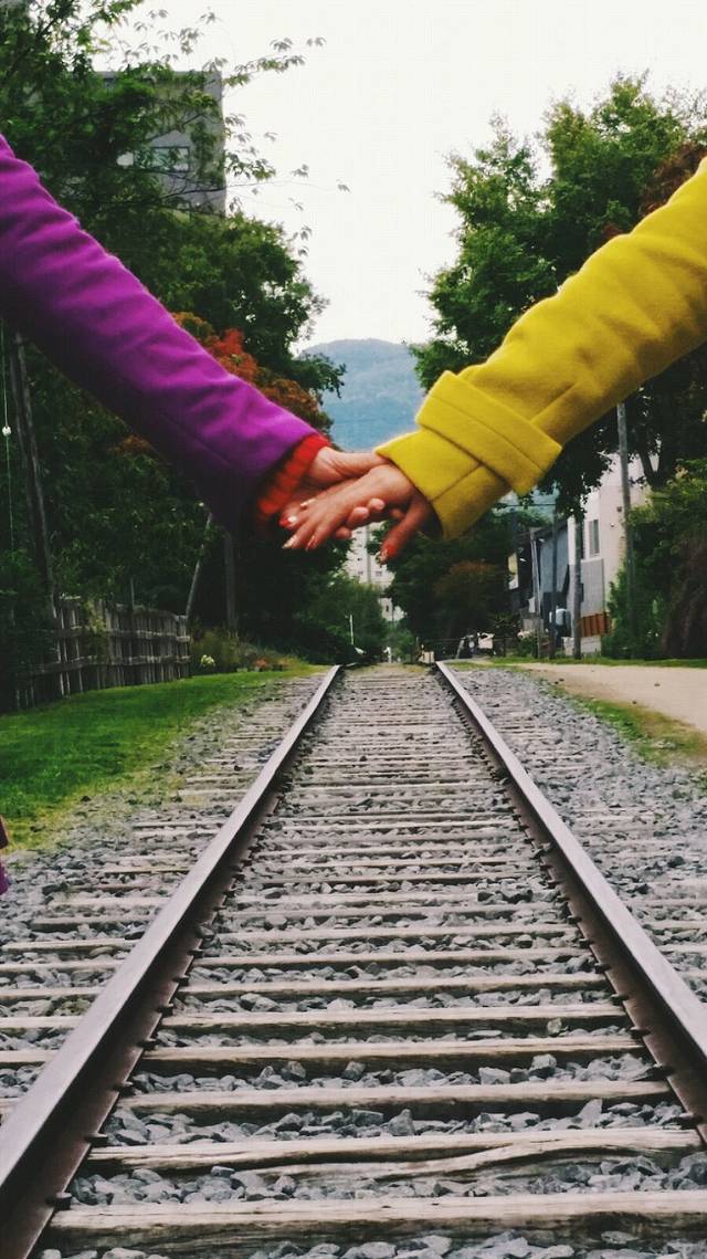 牵手慢慢走。
