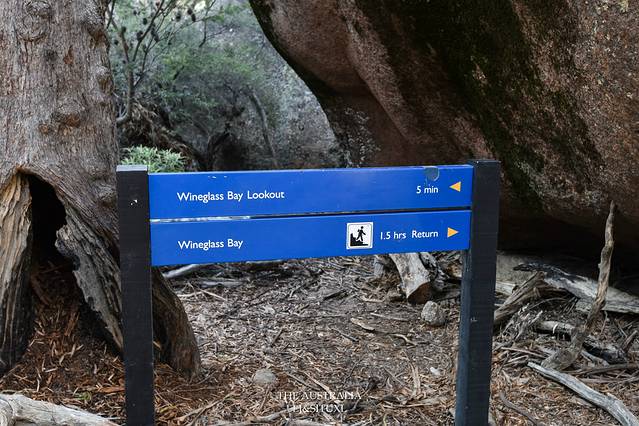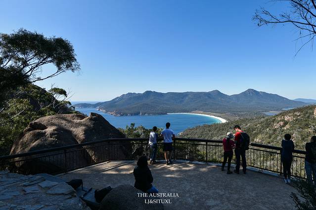 终于来到酒杯湾观景台,肉眼所见也没传说中那么震撼。如果要下酒杯湾的沙滩可以从另外一条路花1.5小时来回,由于时间所限我们就没再前行,而Freycinet国家公园还有许多徒步路线也可以远足,但需要更多时间来慢慢探索。