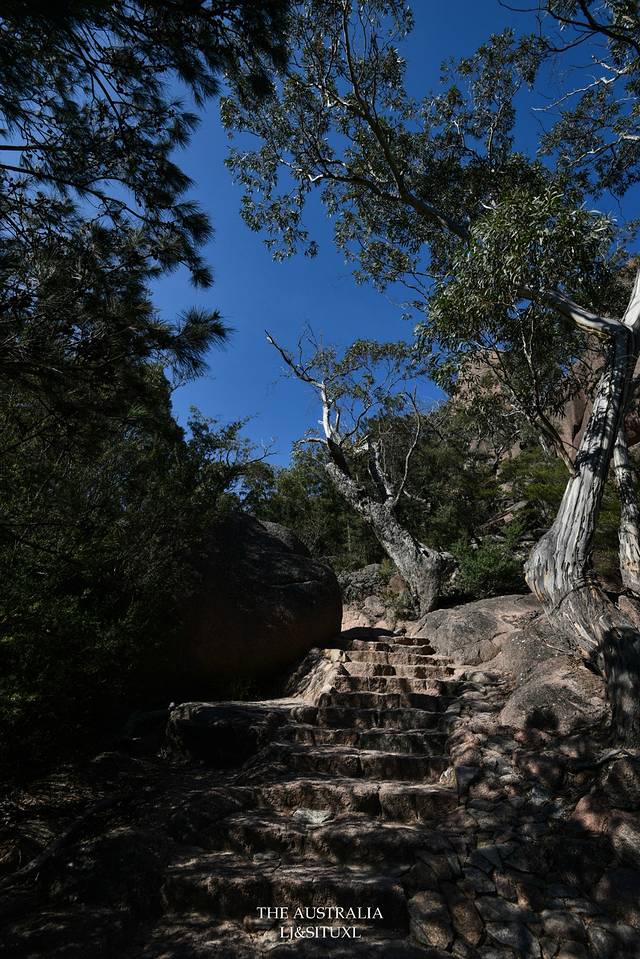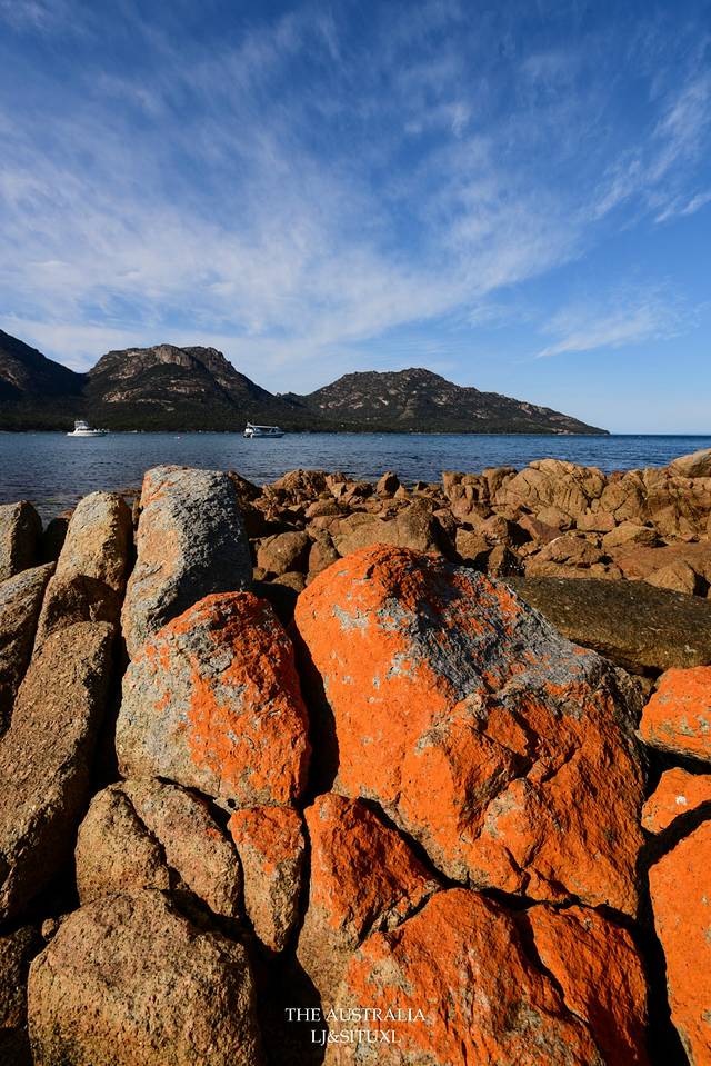 上山期间会见到很多奇形怪状的巨型石头,也会从途中看到我们住的Coles Bay的远景。