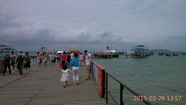 蜈支洲位于三亚的海棠湾,那里是新开发的地方,如果想省钱,可以住岛对面的码头渔村里,那里住宿和吃饭都比较便宜,即使加上每天的上岛费168,也比住在岛上便宜。这个168包括岛的门票和来回船票,20分钟左右一班船,基本上人坐满就开船,一船大约坐200人,都得坐着,不允许站,因为路上很颠簸风浪大,那天我去的时候,船摇晃得很厉害,有人都晕船了!最晚一班出岛是5点吧,可以在岛上玩9个小时。蜈支洲岛上一大半地方是电动车道,必须坐120一位的电动车才能游览,不允许步行参观,很坑!估计原来这里是没路的,老板开了路,就要收费了。我没有坐。住岛上的游客,珊瑚酒店有车接送,我们中午1点在仙人掌酒店准时上了珊瑚酒店的车,车行半个多小时到达码头,然后坐船20分钟上岛,差不多快2点半到的珊瑚酒店,此时是办理入住的高峰期。珊瑚酒店规定下午3点才能入住,我们去办的时候很多房间还没收拾好!高级酒店,整理的时间长,他们的房间是电动窗帘,电动浴帘,大落地窗,还有小冰箱,保险柜(这2个仙人掌酒店也有)。我们入住时已经3点多了,然后就开始给小泳池放水,给我儿子玩水,我休息了一下,就步行去逛岛的可逛部分了。逛了一个小时就差不多走完了,回来到酒店是4点多快5点,然后全家去海边逛逛,吃点烧烤,超贵,晚饭是去酒店的4楼餐厅吃的,犹豫了很久,还是吃了[em]e118[/em],2个菜就要260,贵!儿子一天没好好睡,本来是准备放他在房间睡觉的,我们去参加酒店的篝火晚会,结果回来后他还没睡…我们在晚会上赢了3张优惠券,可惜第二天都没用上,时间太赶了!