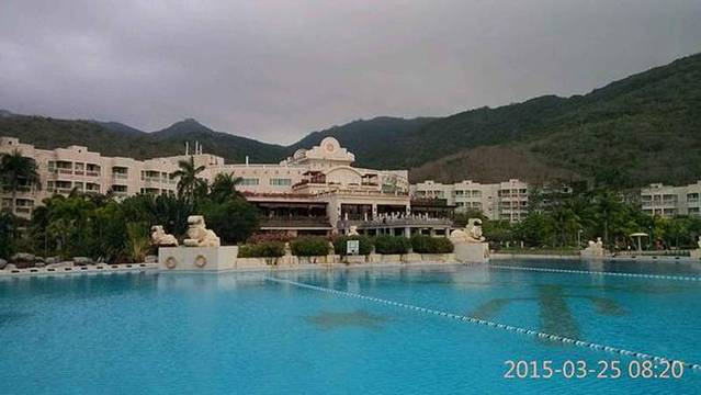 亚龙湾,号称天下第一湾,也是一个来三亚必到的地方,不知道旅行团会不会在此过夜。亚龙湾离三亚市区挺远的,不过有公交到这里。亚龙湾的酒店都很贵,很高档,我选择的仙人掌酒店基本上是这里性价比最高的酒店了,有个很大的游泳池,有私人沙滩,设施齐全,我定的时候一晚上480,奢侈一下。酒店早餐80一位,在饭厅点菜的话大概也是一个人80,有自助餐,178一位,没有点菜划算。不过我们带了锅自己做早饭,你也是醉了吧[em]e104[/em] 全家来这里度假的人很多,像我们3大一小,住一间双床房就可以了,也挺划算的。亚龙湾的海滩有各个酒店的私人沙滩,连成一片,来这里游泳晒太阳的人很多,老外也不少。住亚龙湾的2天我们都泡在酒店里,在泳池边晒太阳,游泳,海边玩玩,晚上在儿童乐园玩玩,时间过的很快的!我之前只在青岛下过海,这次在亚龙湾,由于天气有点凉,浪大,只下去游了一会儿,海水很咸,也不是很清,没有蜈支洲的清澈!我在这里浮潜只模模糊糊看到海底的沙子和一些珊瑚碎片。